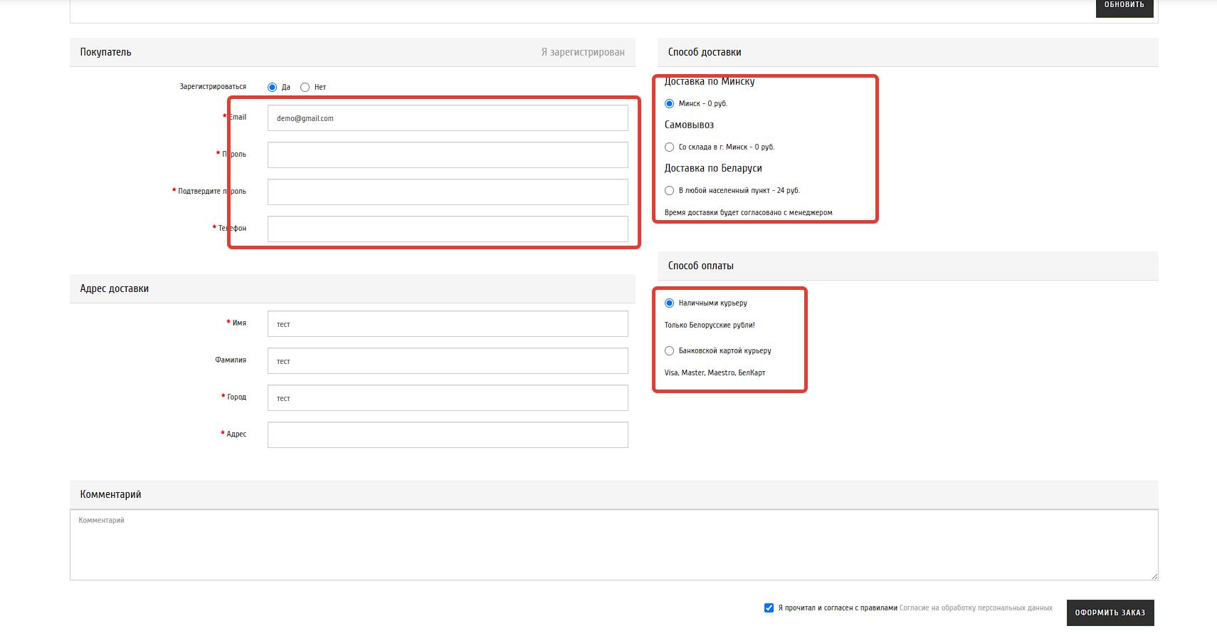 Проверьте введенные данные и если все указано верно нажмите кнопку оформить заказ!
